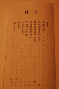 各経典には、三奉請、表白文、三帰依文、経段(抜粋)、現代語意訳が記されています。耐久性を高めるために蛇腹折りになっています。