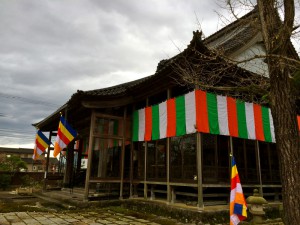 色幕と仏旗でお荘厳の本堂