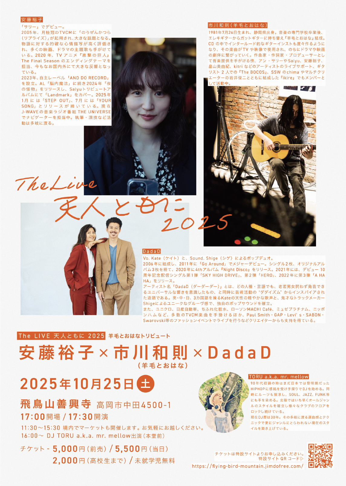 【The LIVE 天人ともに 2025 開催決定!】羊毛とおはなトリビュート出演 安藤裕子、DadaD、市川和則(羊毛とおはな)